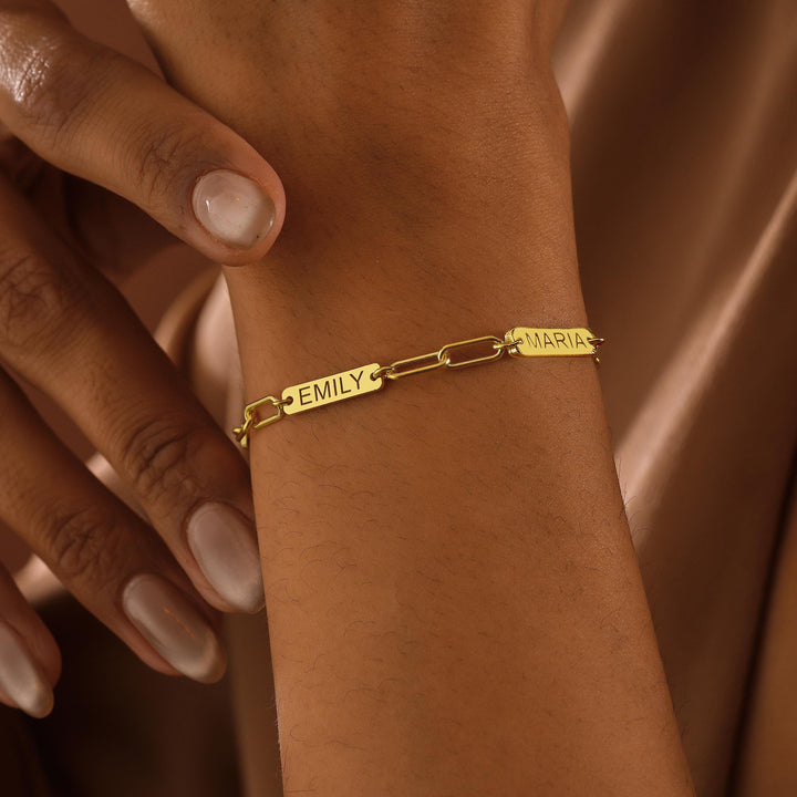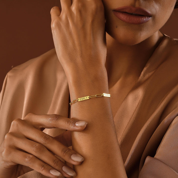 In a world where moments and memories define us, the 14K Gold Link Chain Bar Bracelet is more than just an accessory—it’s a cherished token of the connections that shape our lives. Imagine wearing the names of your loved ones close to you, a gentle reminder of the bonds that hold you together, no matter where life takes you.