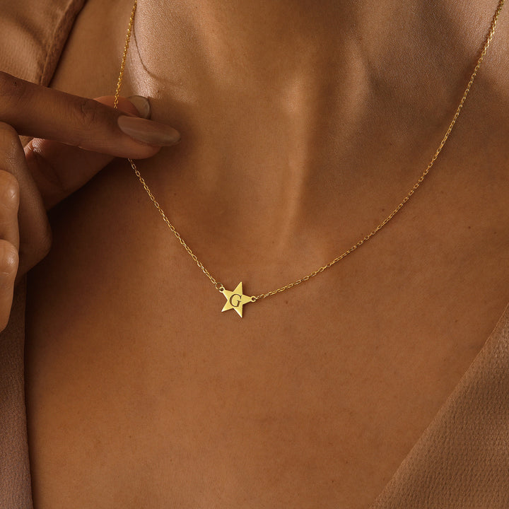 Imagine gifting a piece of the night sky with our 14K Gold Star Necklace with Initial. This stunning necklace features a delicate star pendant, beautifully engraved with an initial of your choice. Perfect for birthdays, anniversaries, or any special occasion, this personalized piece adds a unique and heartfelt touch to any outfit.